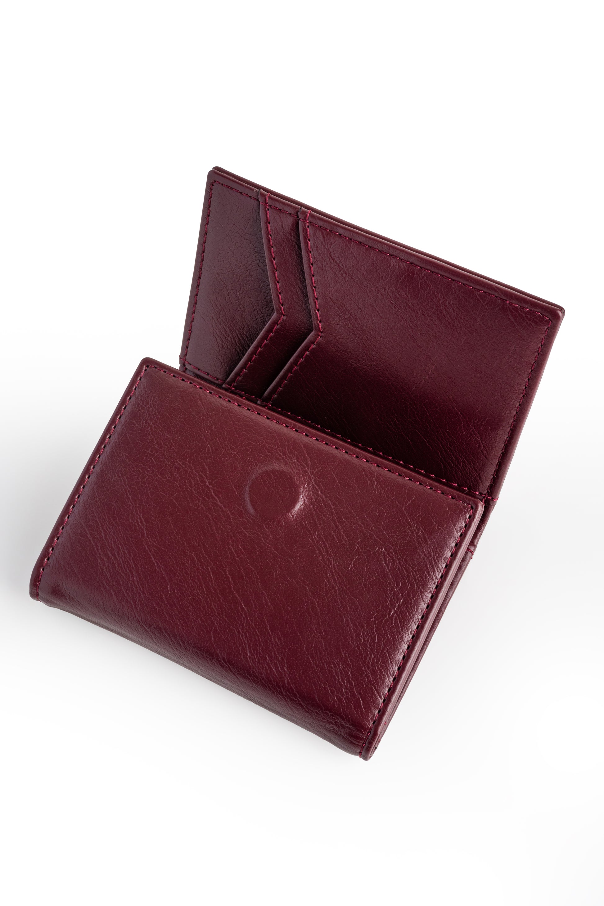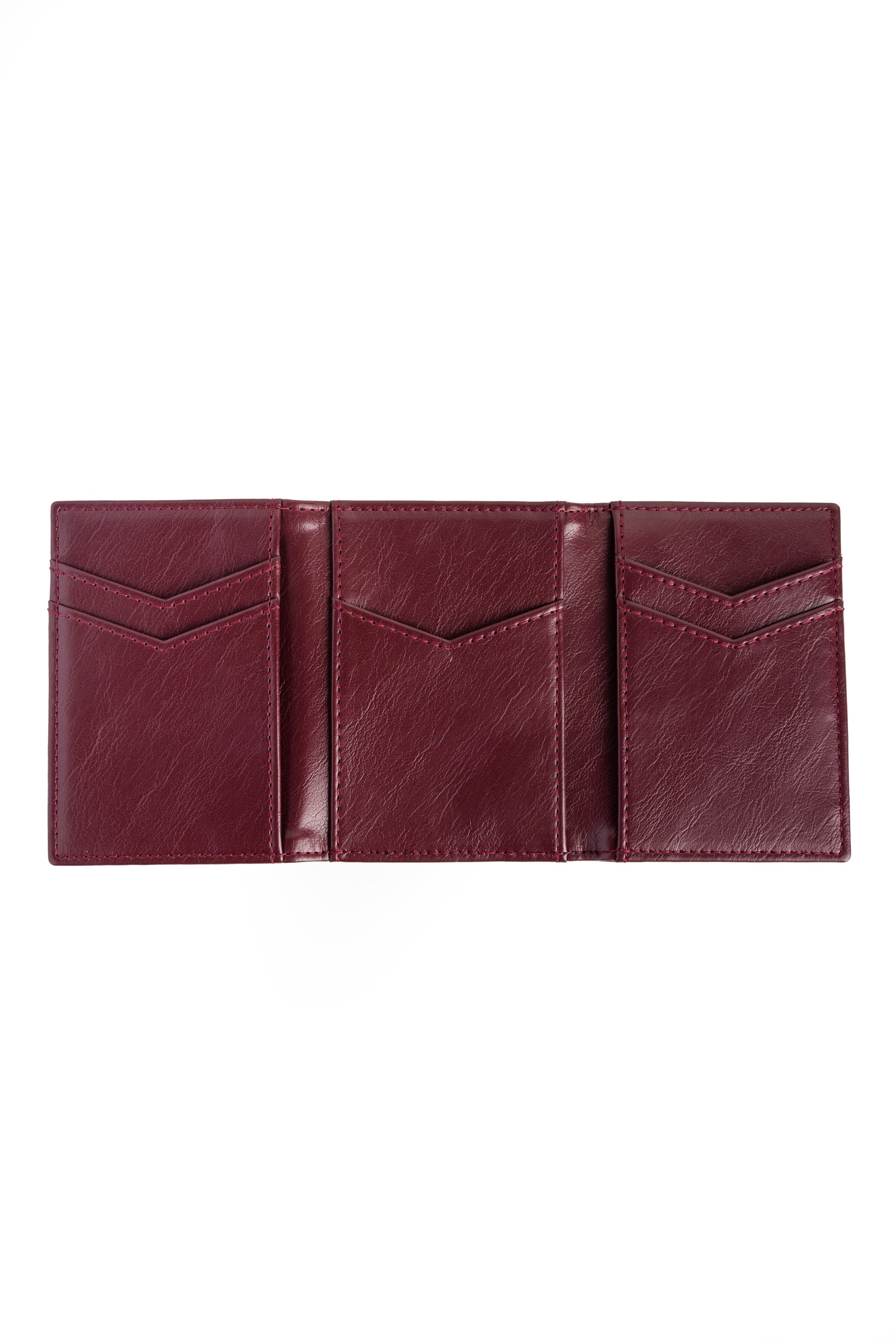 Additional Features: Trifold wallet design featuring two card slots on each side and one card slot in the center; interior pockets integrated behind the side card slots; an external pocket on the front for quick access