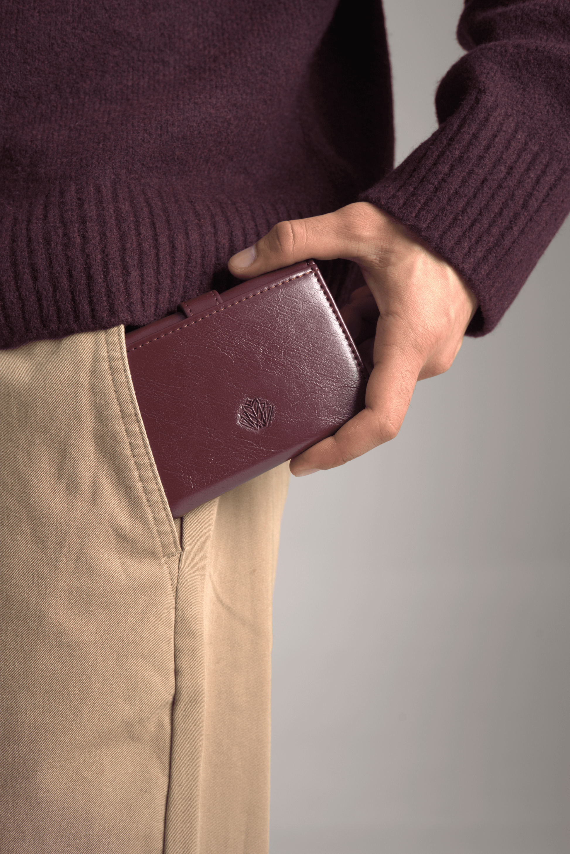 Nuri (“radiance”) is a trifold wallet with a soft, balanced silhouette. Warm in tone, it rests comfortably in the palm, a familiar gesture, almost like it was always meant to be there.