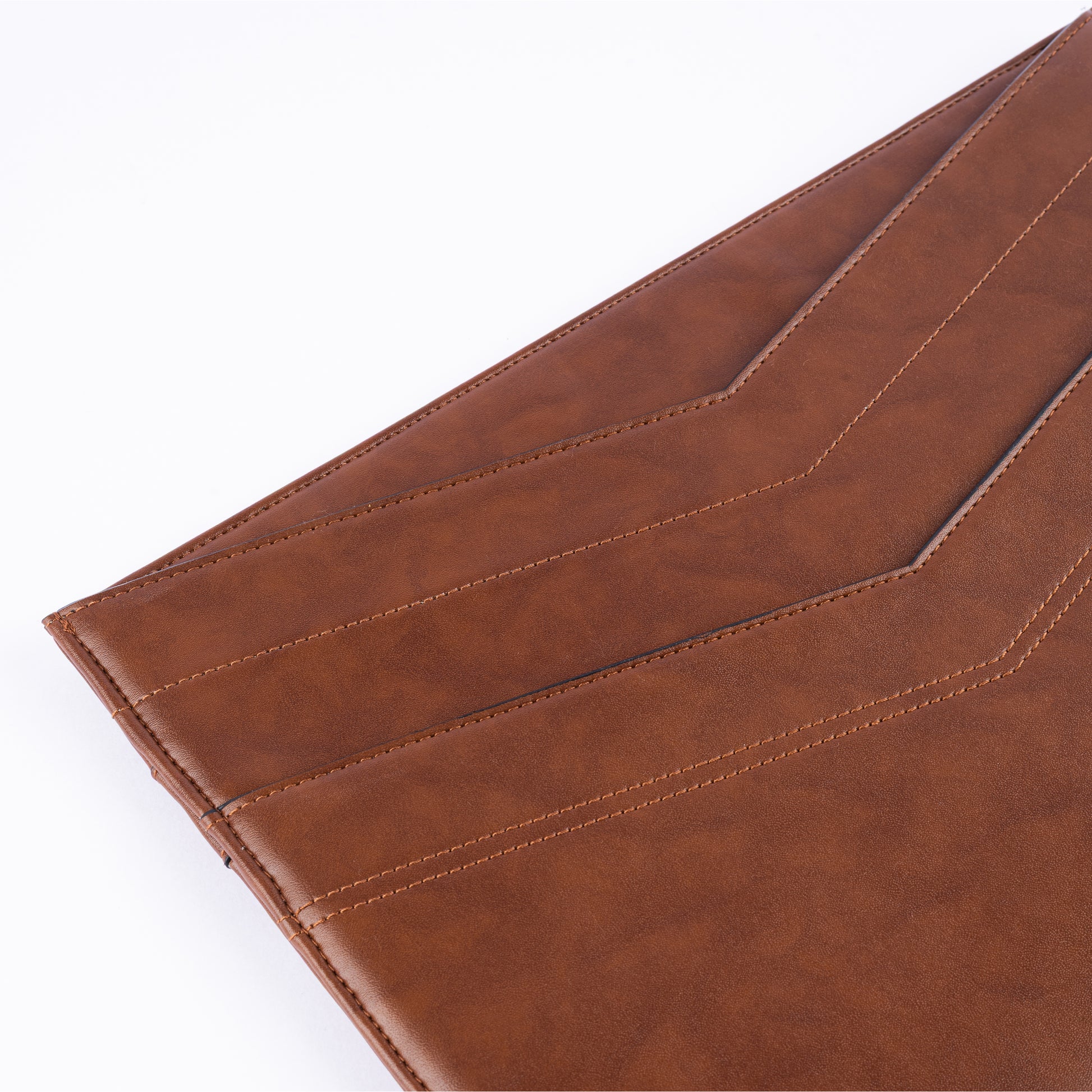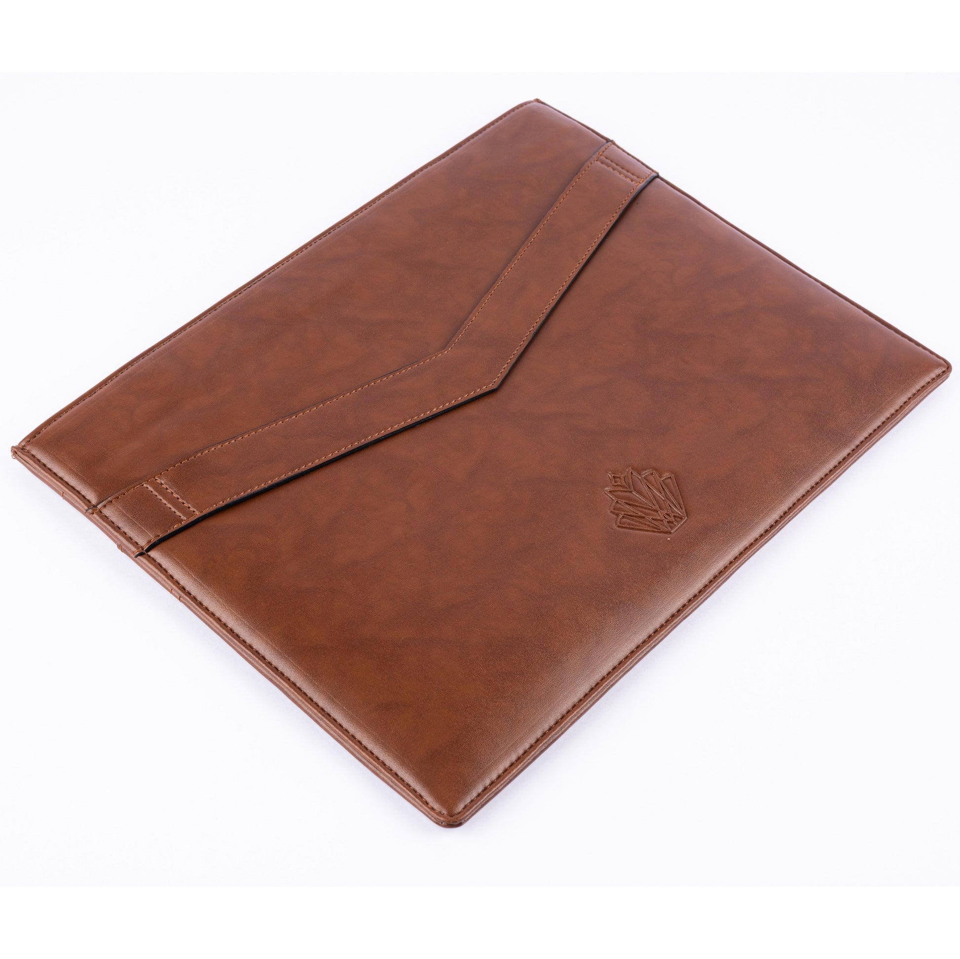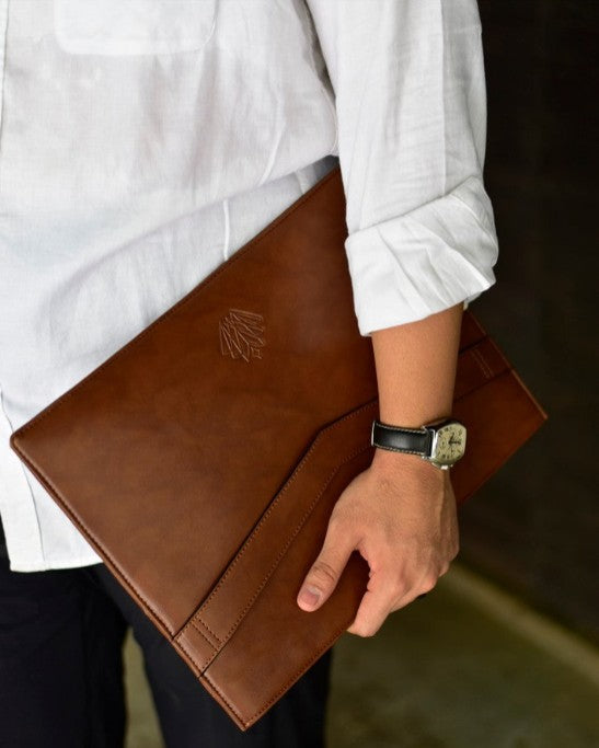 Naaz embodies quiet pride, offering protection for a 13 and 14-inch laptop in a form that is slender, refined, and practical. Its textured grain distinguishes it within the collection, while the magnetic closure preserves elegance in motion. The integrated hand strap transforms it into a carry piece, offering freedom from a larger bag in both professional and casual settings. Pride here is understated, dignity expressed through restraint and ease.